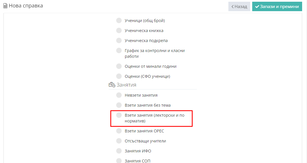 3. Изберете “Взети допълнителни занятия”.