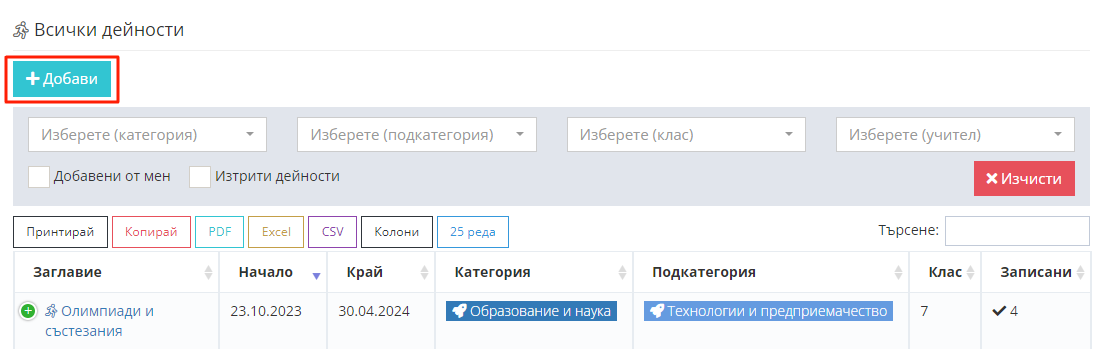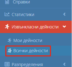 1. Навигирайте до модул "Извънкласни дейности" и изберете "Всички дейности".
