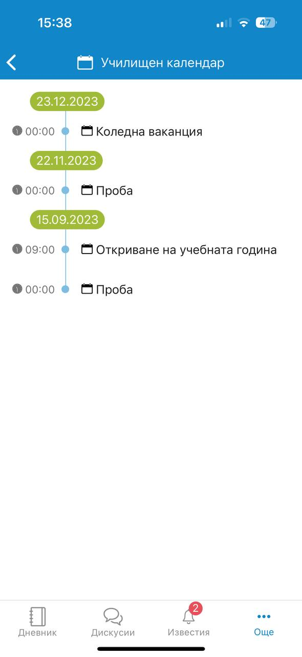 3. Ако искате да видите всички училищни събития кликнете "Училищен календар".