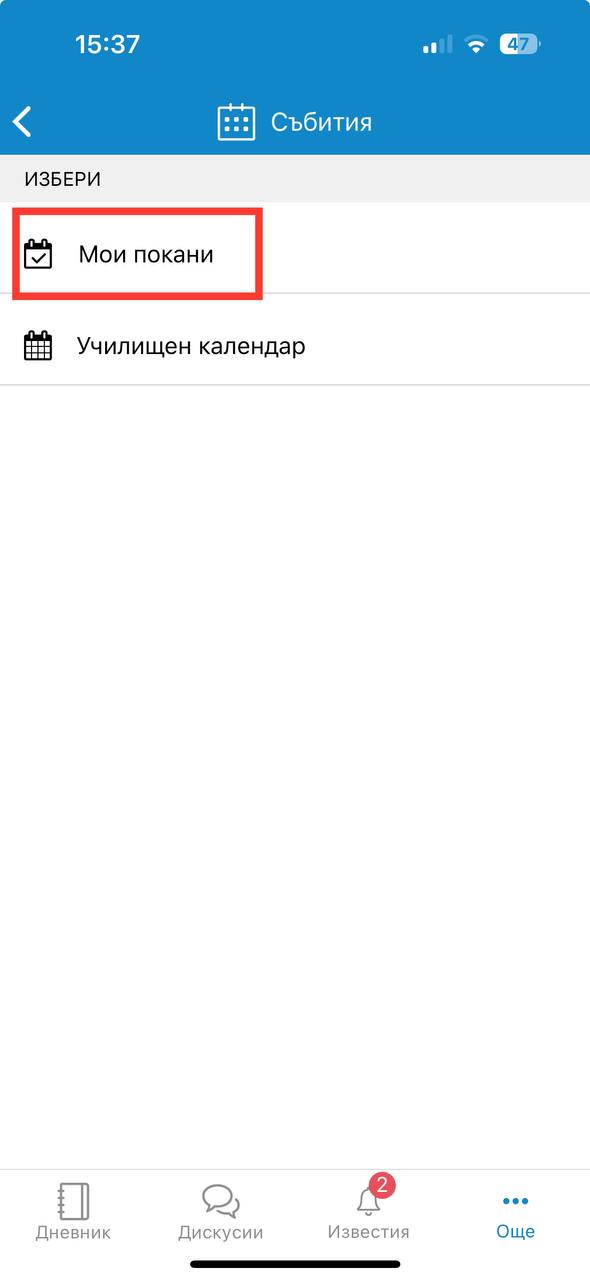 2. Кликнете "Мои покани", за да видите събитията, на които сте поканен/а.
