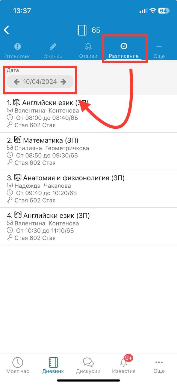 2. Кликнете "Разписание". Може да смените датата, ако искате да видите разписанието за конкретен ден.