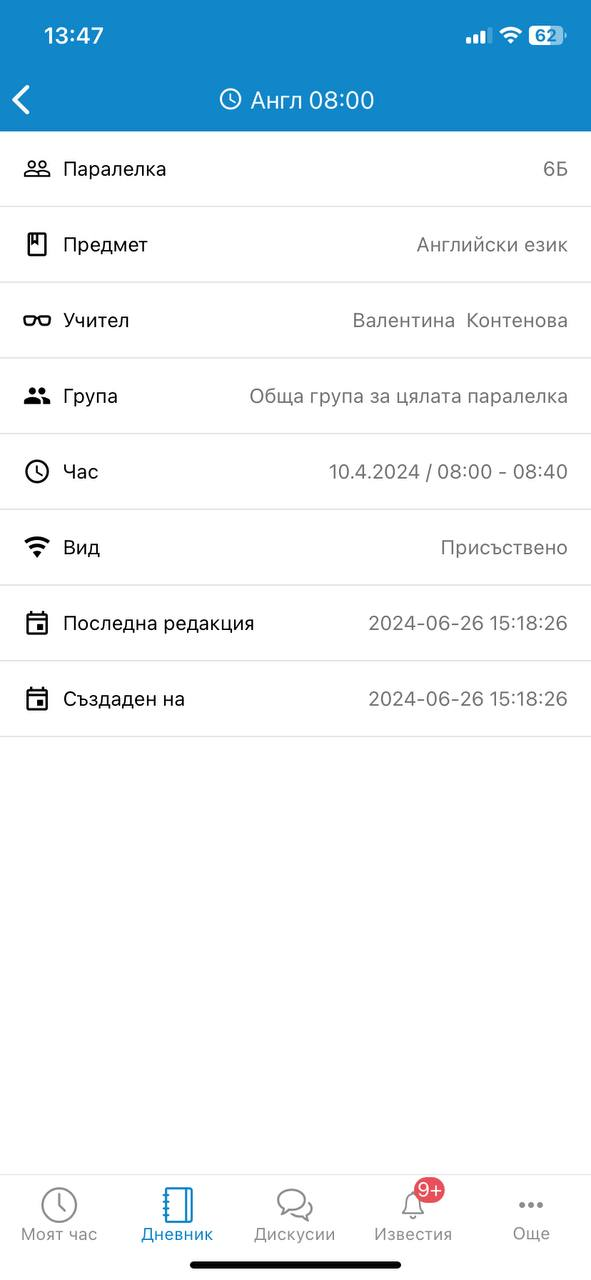 3. Ако искате да видите повече информация за даден час, кликнете върху него.