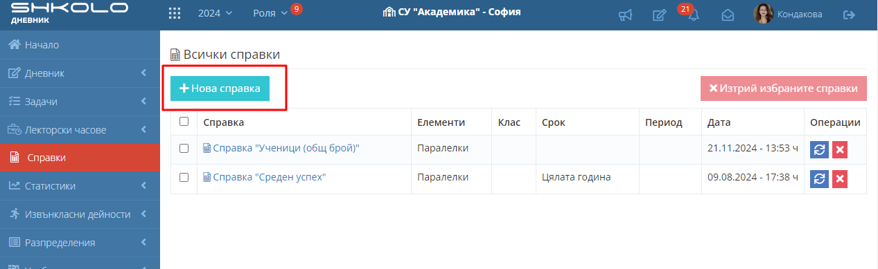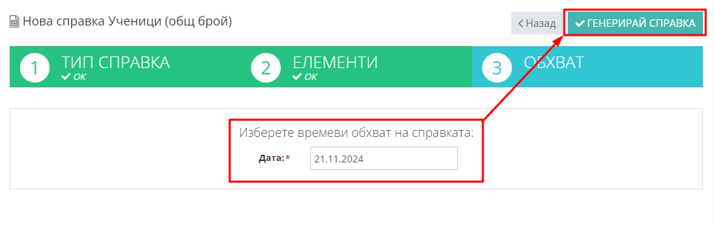 4. Изберете времеви обхват на справката и кликнете бутон "Генерирай справка".