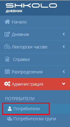 1. Навигирайте до модул "Администрация" и изберете "Потребители".