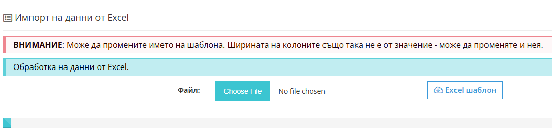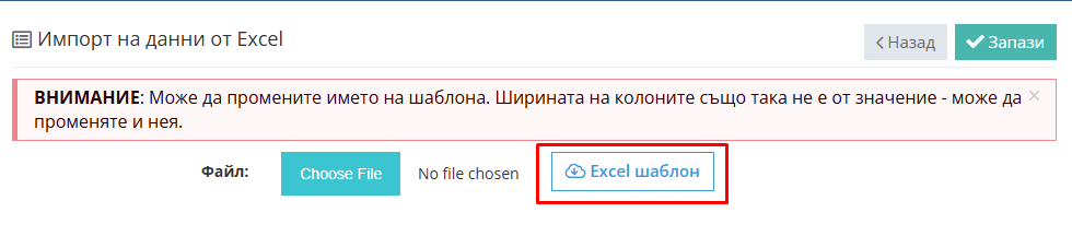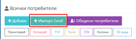 2. Натиснете "Импорт Excel"