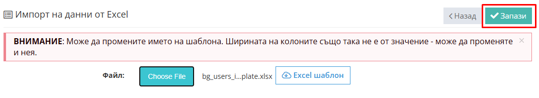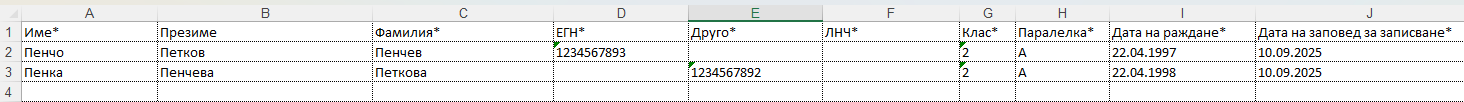 Важно: Не променяйте структурата на файла, като добавяте или премахате колони!