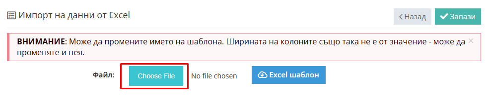 Натиснете "Choose File" и изберете файла от компютъра ви. В случай че сте го запазили с друго име, не се безпокойте, името на файла няма да окаже влияние.